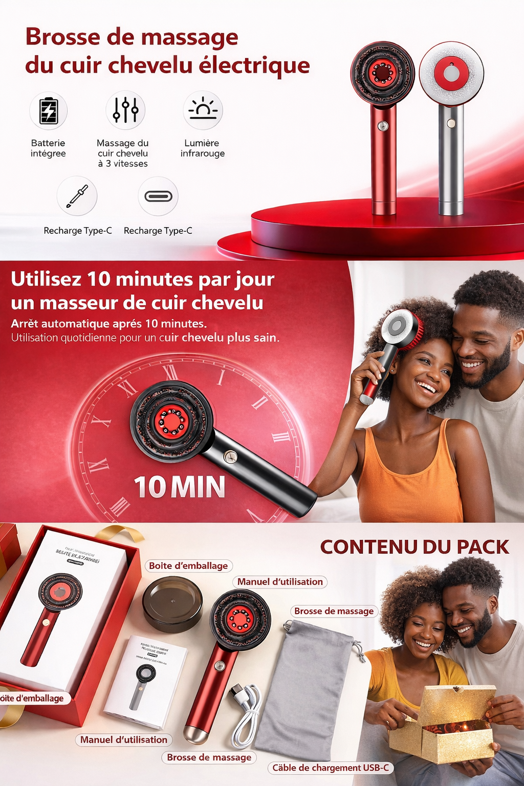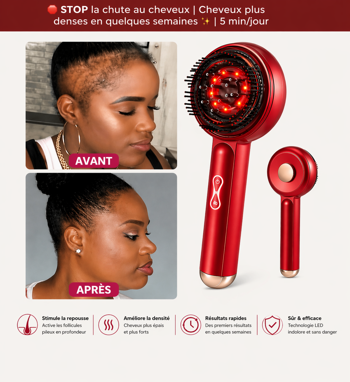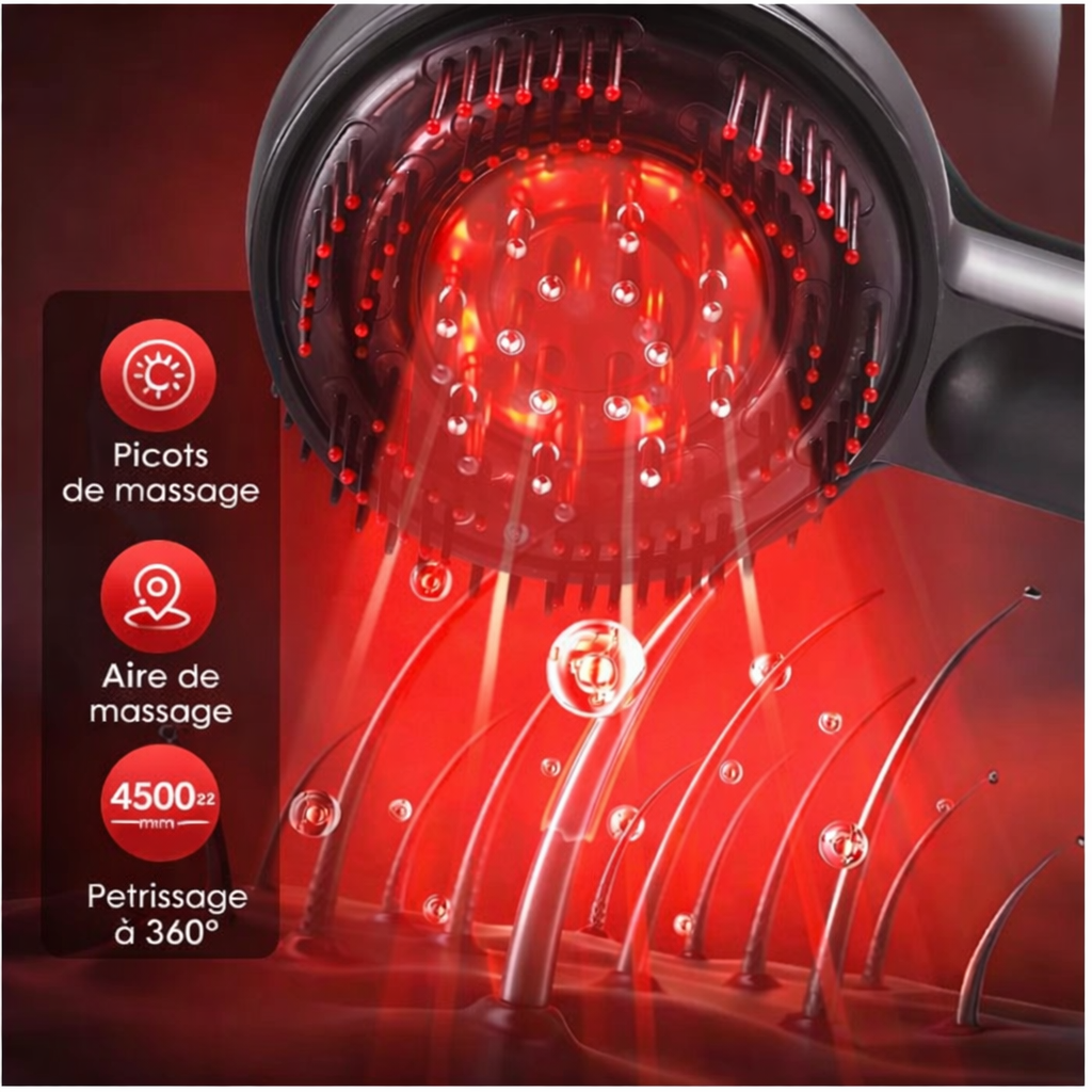 “Super pratique ! La fonction massage avec lumière rouge est vraiment relaxante. Mes cheveux paraissent plus forts et plus brillants